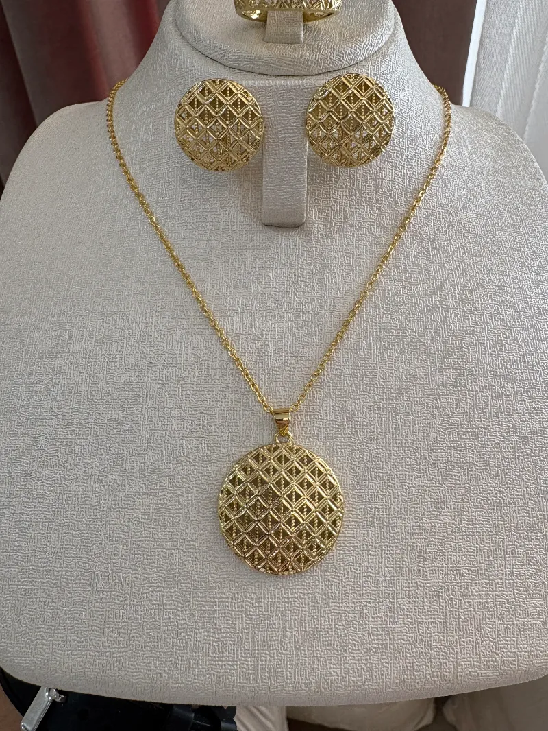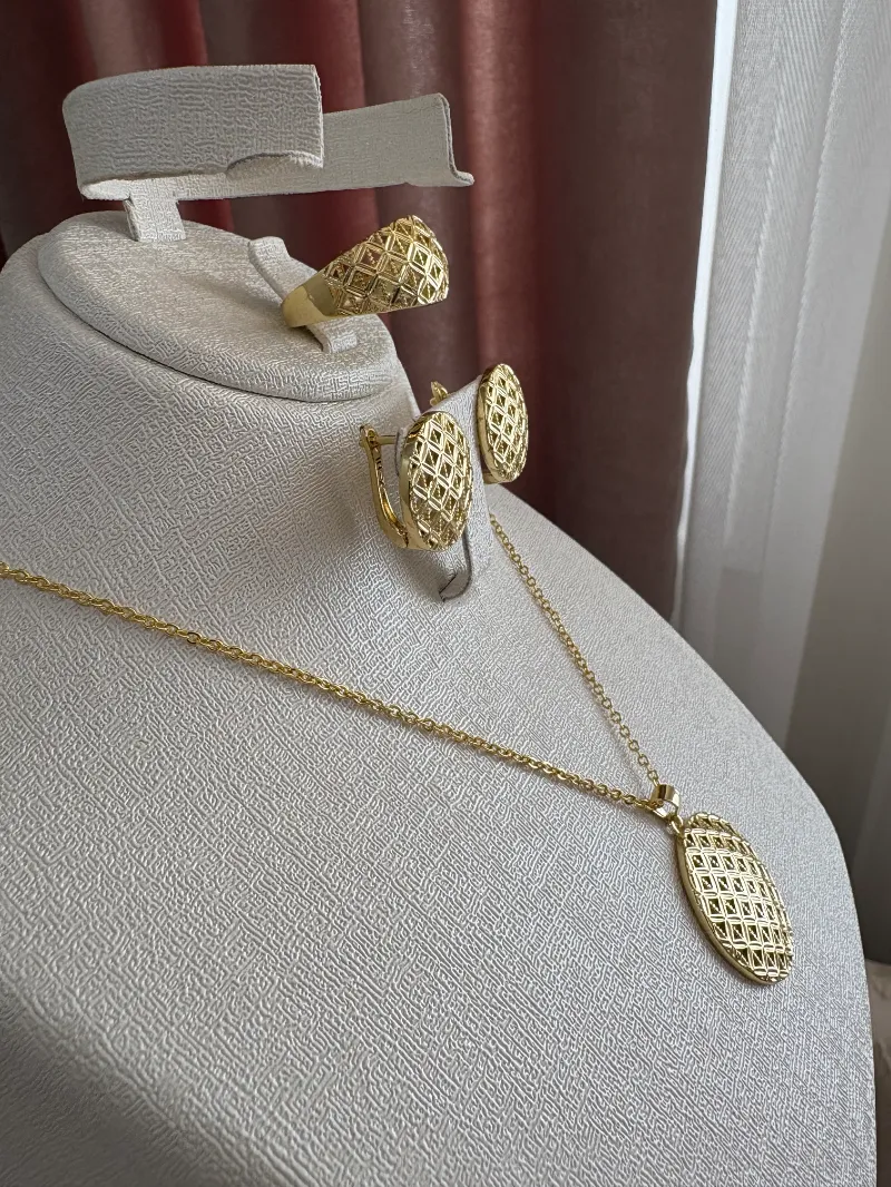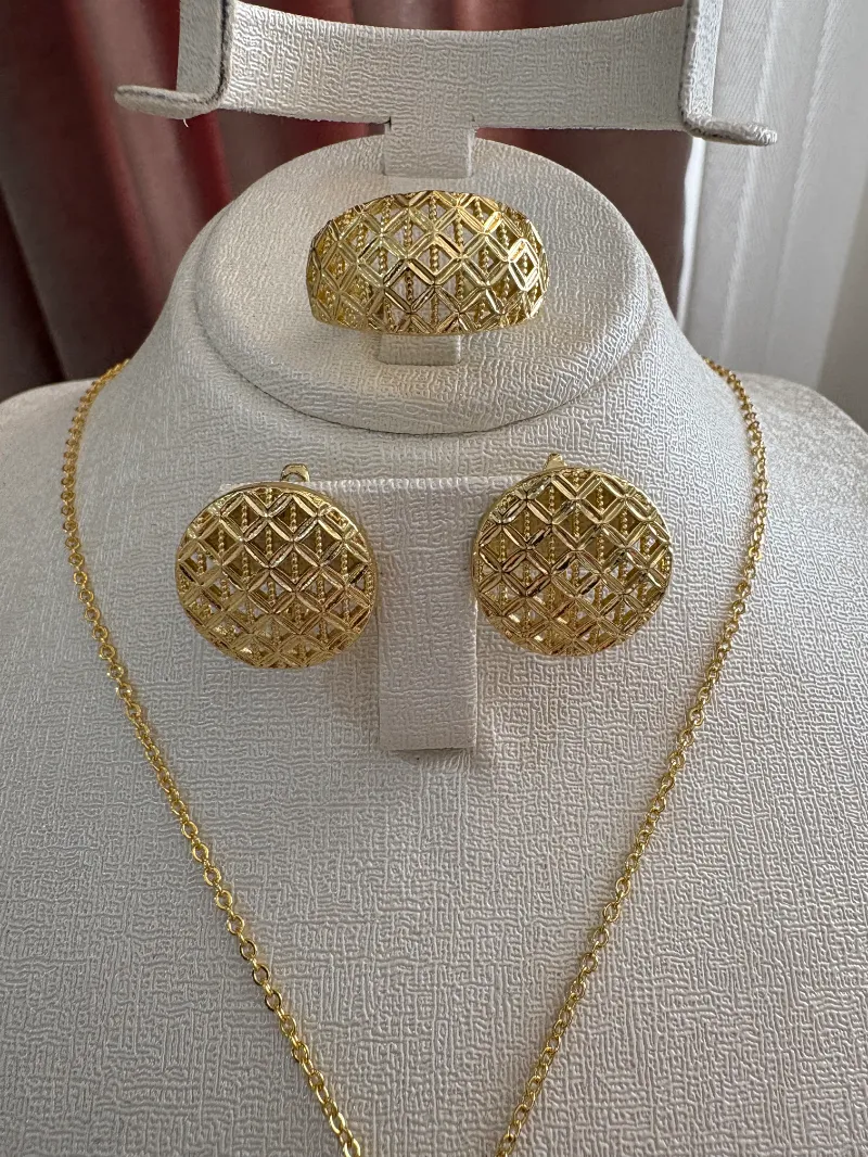 Parure élégante 3 pièces – Chaîne, boucles et bague plaqué or